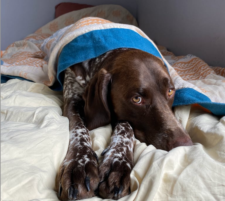 4 weeks in and I sat on the top deck overlooking the landscape, my thoughts spiraling: "Am I good enough? Does anyone truly see value in what I do, or am I just fooling everyone?" Just then, a cold nose nudged my hand, and a pair of trusting eyes looked up at me—my GSP, Bella. Her simple gesture, seeking a pat or maybe just offering her presence, brought a moment of comfort and grounding. It made me wonder: How could this straightforward act cut through the chaos of my self-doubt? This fur ball of (way too much puppy power packed into legs too long for her body) connect with me, without words in a way I felt comforted.